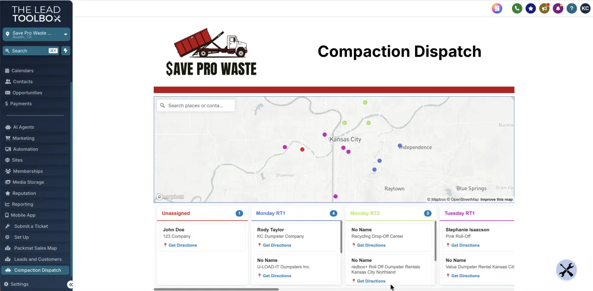 Your central hub that connects sales, communication, and operations — with exclusive routing & sales mapping tools built specifically for compaction and hauling companies.